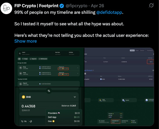 I already wrote about @defidotapp in this review, where the gasless swaps are great, but the fees are high: