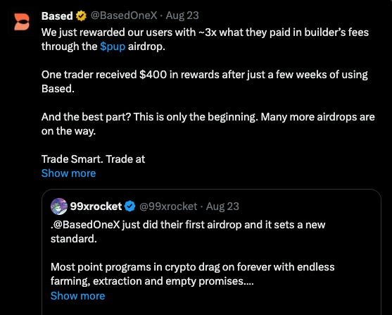 Since I’m a bad trader, I’ll just stick to making infrequent trades on Based to position myself for multiple airdrops.