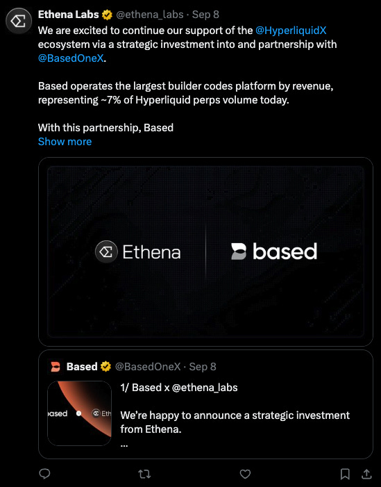 Based recently received funding from Ethena, and sENA holders will benefit from Based XP (their points system).