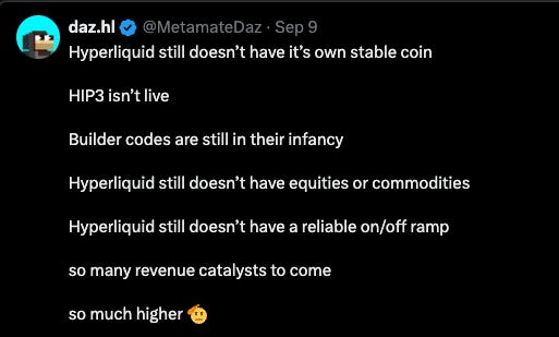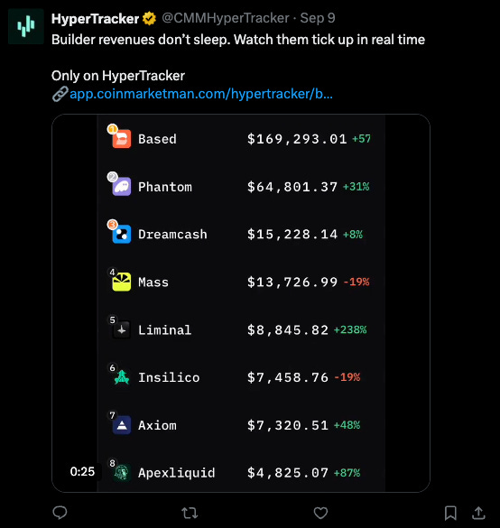 These platforms can monetise by charging a fee on top of Hyperliquid’s trading fees, providing them with an extra source of revenue.