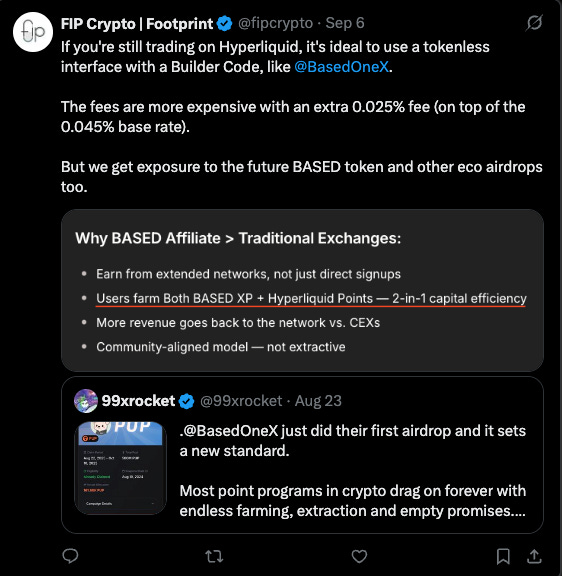 The perp fees are 2x that of Based, so it’s more expensive to trade here, and will hit almost 0.1% after considering Hyperliquid’s fees too.