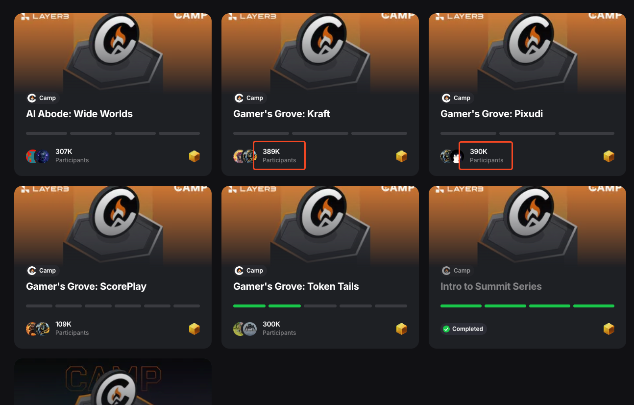 Camp had over 390k participants in their campaign on Layer3, with many more likely to have interacted with the testnet.