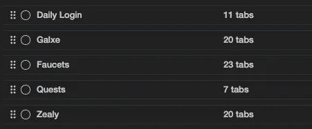 I had a bookmark folder of all the daily tasks that I’ll do (even claiming faucet tokens).