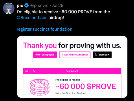 One of the major wins that I saw was how pix got a big airdrop from Succinct because of the PFPs she designed.