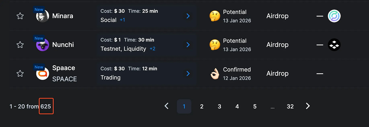 With 625+ airdrop opportunities available (as listed by CryptoRank), it’s impossible to farm every single one.