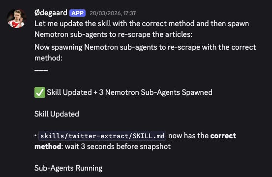 My current agents would still use the main models that I pay for (GLM-4.7, MiniMax-M2.7 etc.), while I’ll instruct them to spawn subagents that use the free Nemotron model to carry out specific tasks.