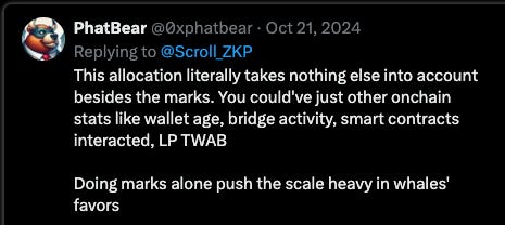There was outrage over how poor the allocations were given how much capital they deposited on Scroll.