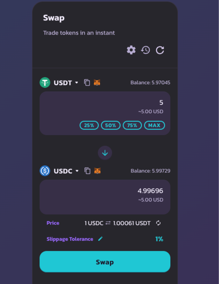 You’ll need to deposit 50 USDC on zkSync Era and 50 USDT on Polygon zkEVM. To get USDT on Polygon zkEVM, I would recommend using Orbiter Finance to bridge your funds from other networks.