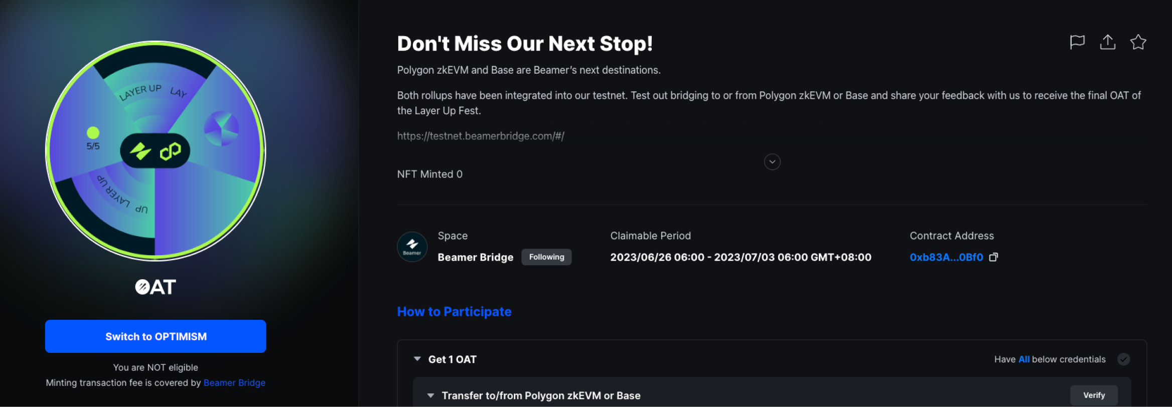 Another bridge that could potentially have an airdrop, you can complete social tasks to get this OAT.