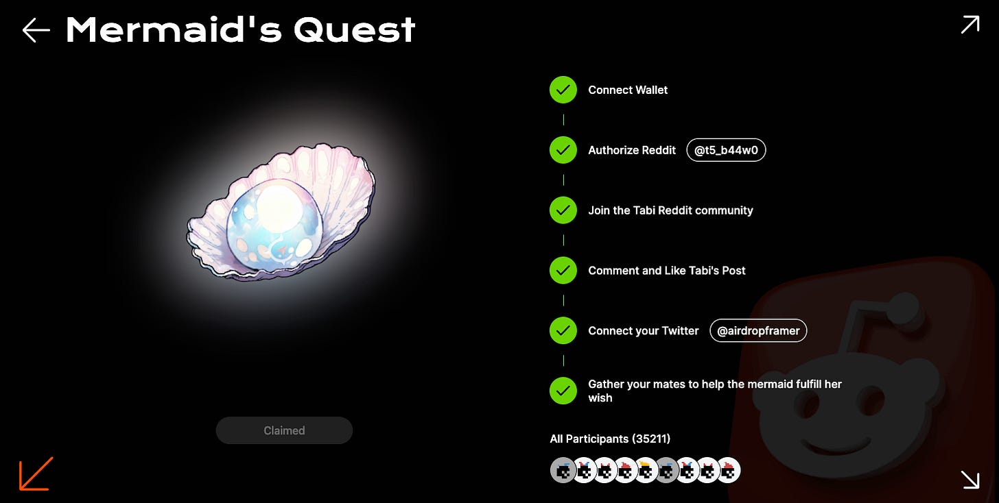 There’s a new task for Tabi, where you’ll need to claim a Mermaid's Quest NFT on zkSync Era.