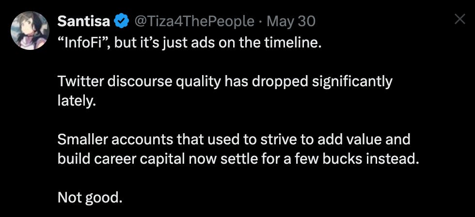 InfoFi has made it painfully obvious that some accounts will just talk about anything for the rewards.