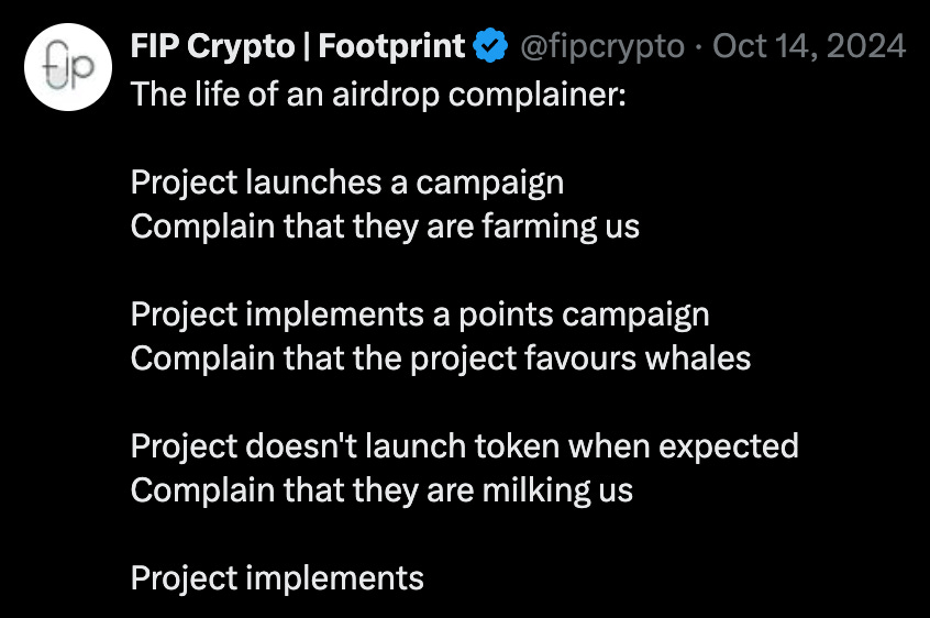 And if all of our content is just about complaining about bad airdrops, others will start to unfollow us.