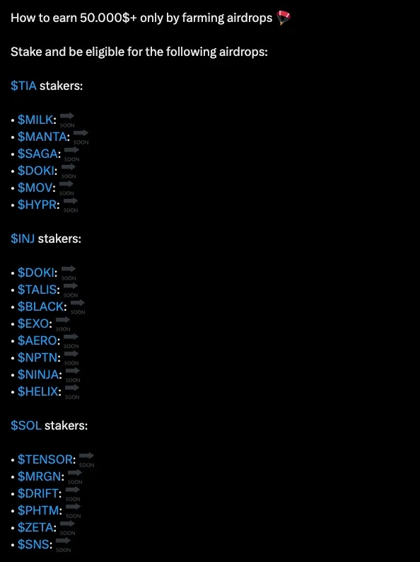 Remember all the airdrops we were supposed to get just by staking TIA?