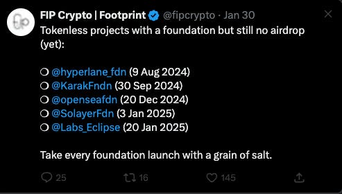 I can continuously talk about tokenless projects and 'demand' for them to launch their token (and get tons of engagement).