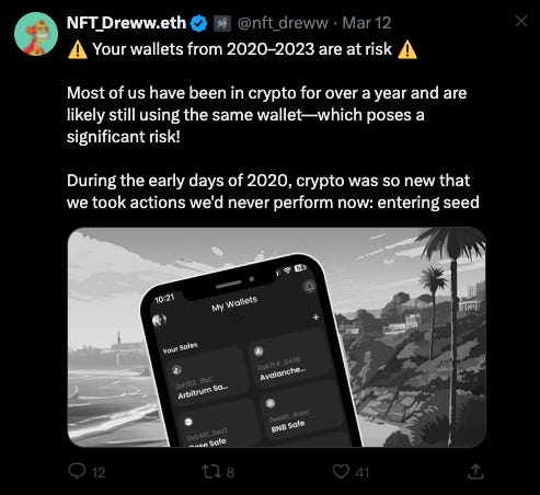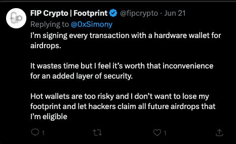 I’ve been ridiculed for using a hardware wallet for airdrops, but I still believe that it’s an important part of your security setup: