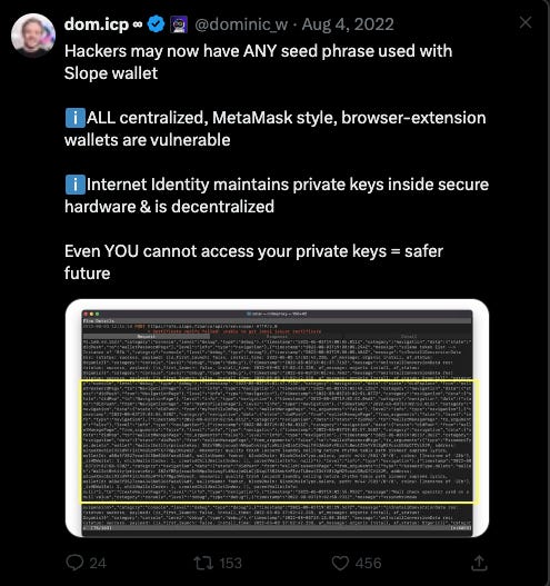 The seed phrases were not properly encrypted on Slope’s server and were stored as plaintext.