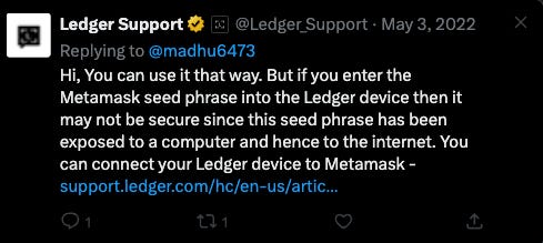 Missing out on NFT mints: I hate NFT mints because they’re mainly FCFS, and it makes things worse with a hardware wallet. It takes an extra few seconds when signing in to the platform and pushing any transactions, so I’m likely to miss out on popular mints.